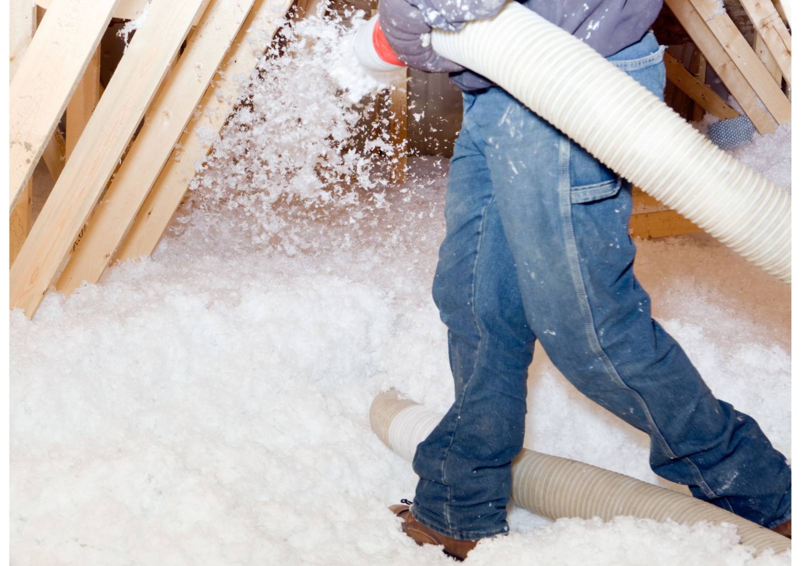 Cette méthode de pose par soufflage s'adapte particulièrement aux espaces difficilement accessibles, comme les combles perdus avec une charpente en W. Il est cependant essentiel de noter qu'une fois l'isolant soufflé, l'accès à l'espace est restreint. Les flocons, répartis de manière homogène, ne doivent en aucun cas être tassés pour préserver leur efficacité isolante, rendant ainsi l'espace inutilisable pour d'autres fins (passage, entreposage,…).