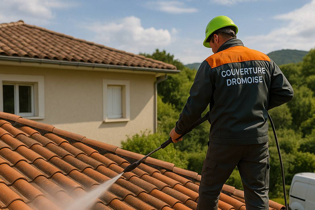 Vous constatez des tuiles noircies, de la mousse ou des traces d’humidité sur votre toit ? Faites appel à notre entreprise COUVERTURE DRÔMOISE, spécialiste du nettoyage de toiture à Romans-sur-Isère. Nous intervenons sur tout type de toit pour éliminer les mousses, prévenir les infiltrations et prolonger la durée de vie de votre couverture.